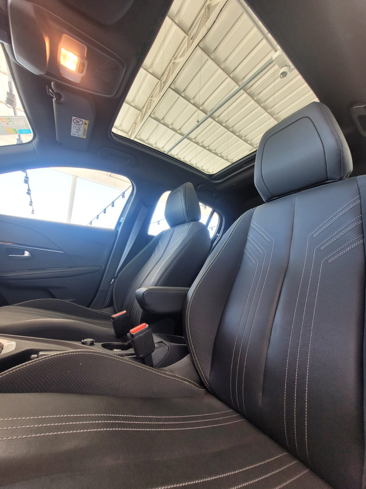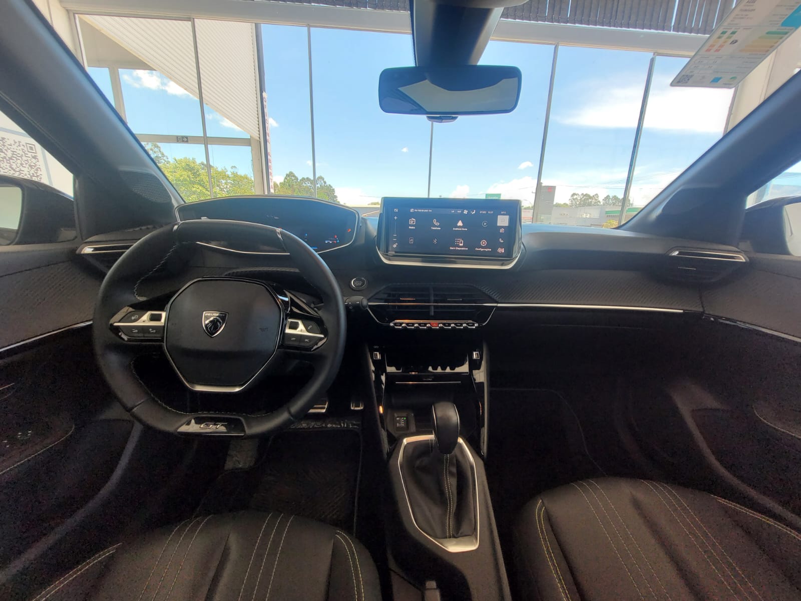 Interior: Peugeot i-Cockpit 3D, painel digital de 10" (ou 10,3"), central multimídia de 10,3" (Apple CarPlay/Android Auto sem fio), bancos em couro/tecido com costura verde, carregador por indução, ar-condicionado digital.